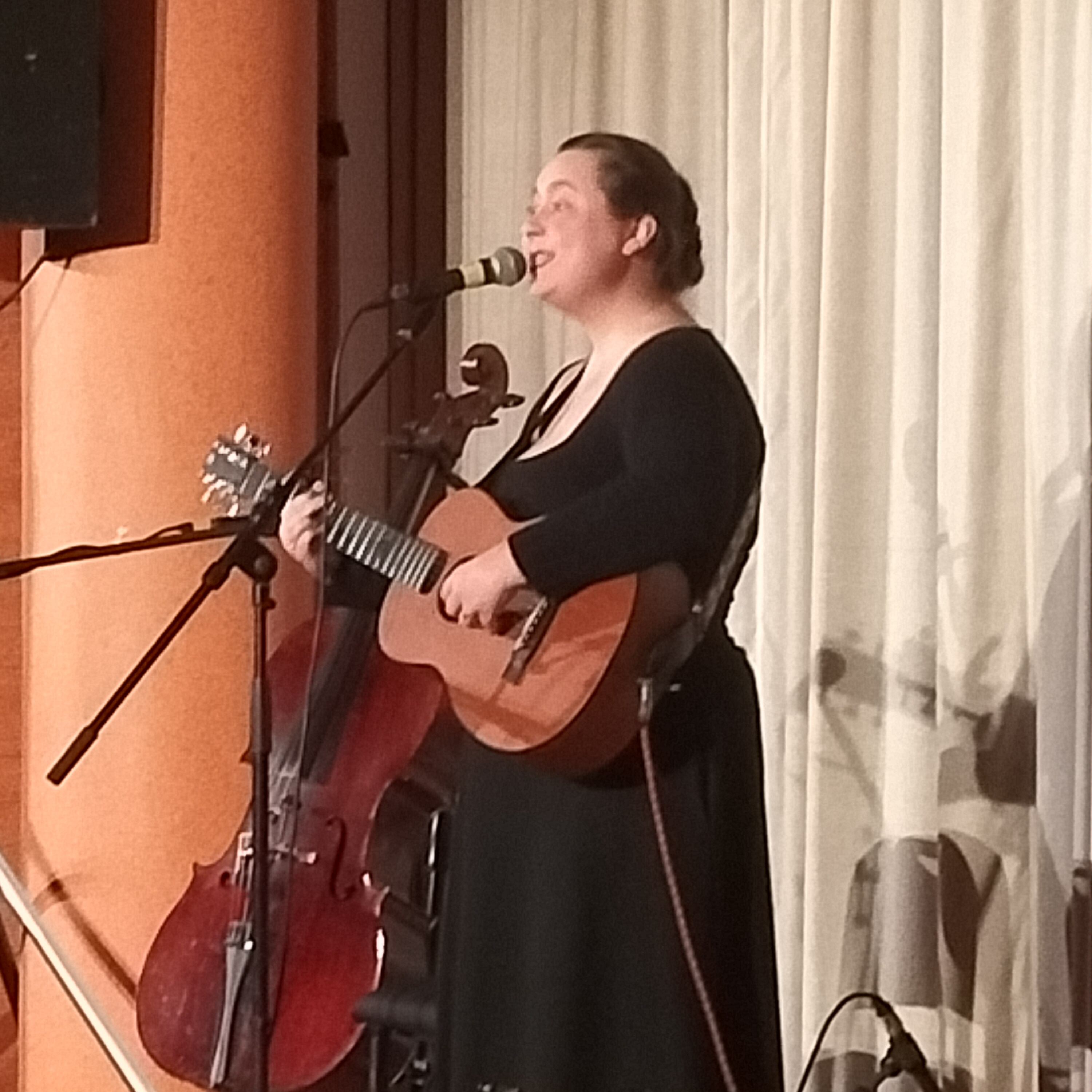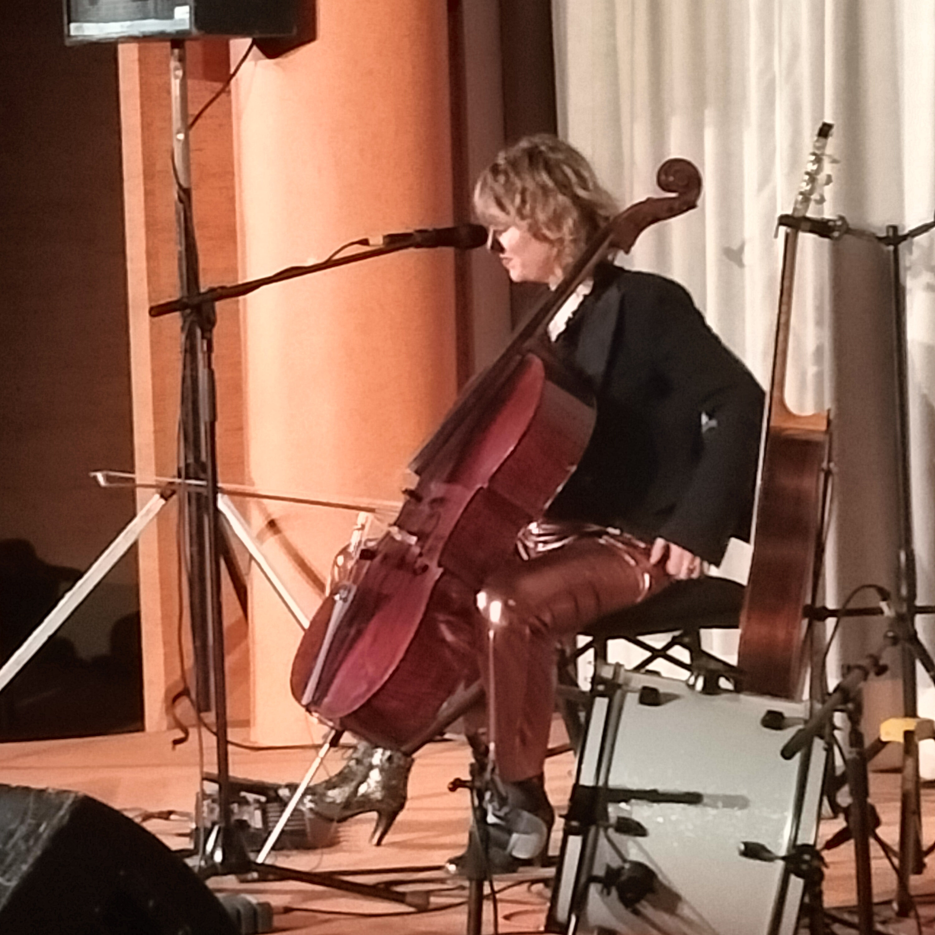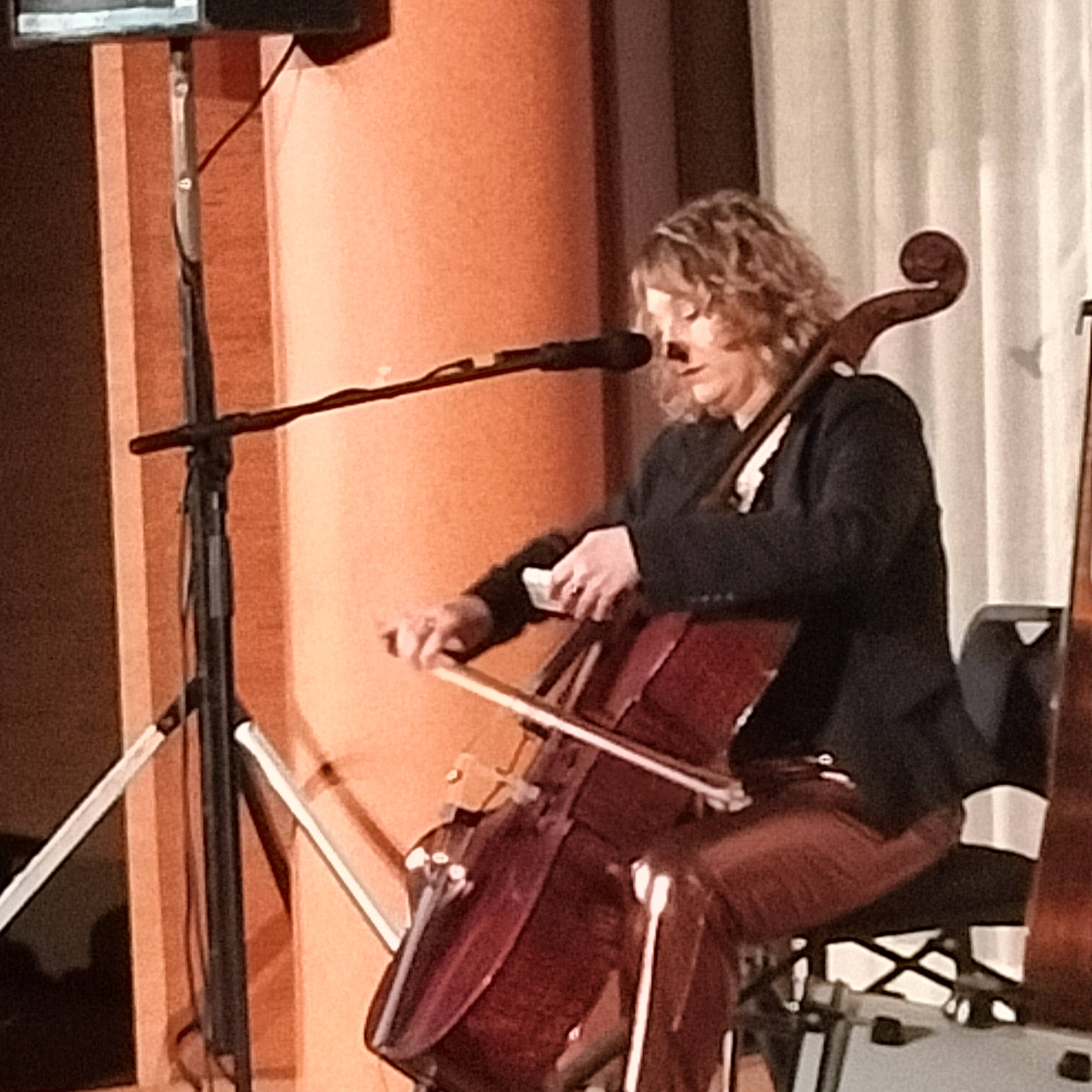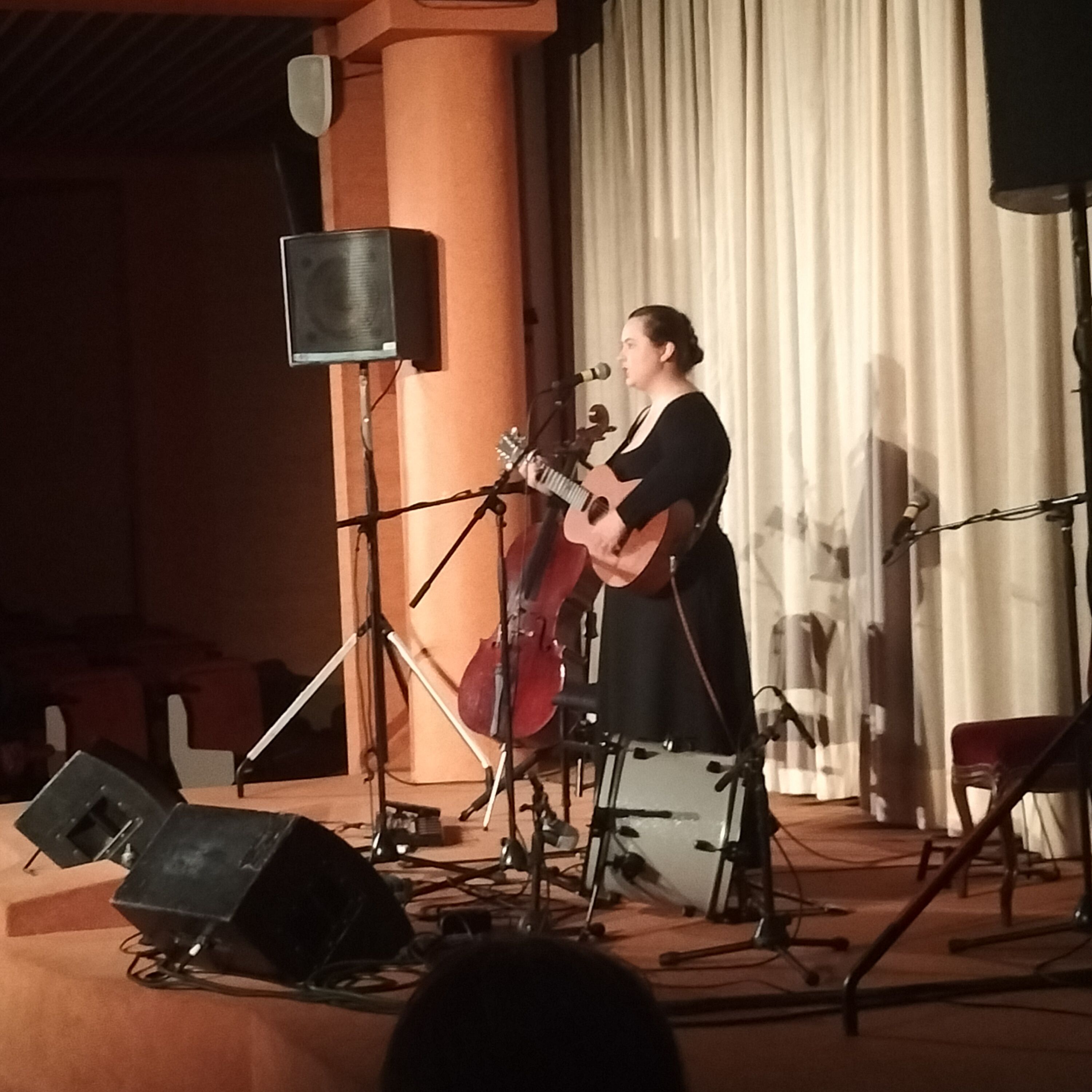 La seconde partie du concert sera superbement tenue par Armande Ferry-Wilczek. Tessiture « coloratur » au vibrato envoûtant, articulation irréprochable, mais l’essentiel survient au milieu du tour de chant. Je veux parler de l’entrée en scène du partenaire de la chanteuse : le violoncelle. Loin d’être un simple accompagnateur, l’instrument s’impose en véritable complice de l’interprète. On pourra d’ailleurs s’en apercevoir en février 2026, aux « Bains-Douches » à Lignières, puisque notre Armande, ce soir-là, assurera la première partie de Dominique A !